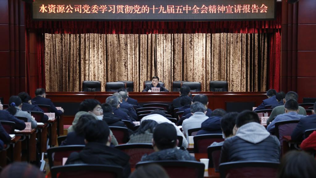 12月8日,萬家寨水務控股集團黨委委員、副總經理蔡開東為水資源公司全體黨員干部作學習貫徹黨的十九屆五中全會精神宣講報告。水資源公司領導,副總工程師、紀委副書記,各部室全體干部職工參加。