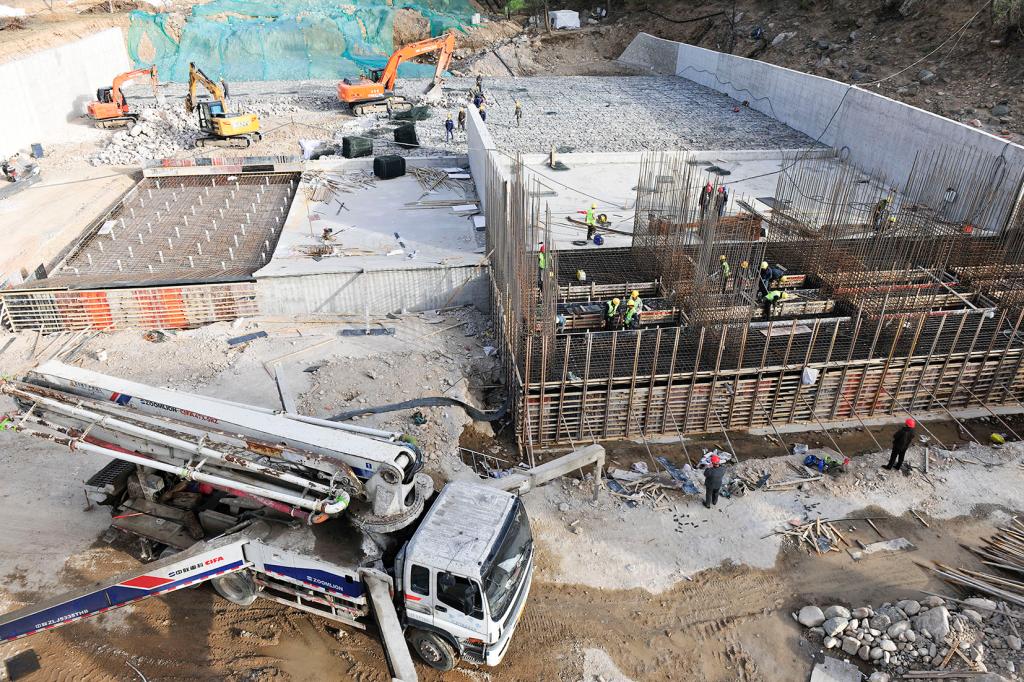 截至目前,工程各階段任務進展順利,各項工作正在同步推進,3個標段已經展開全面施工,22個施工面同時作業(yè)。工程自2022年3月開工建設以來,已累計完成投資8.16億元,取水泵站完成水泵層及電機層以下混凝土澆筑,主體土建施工完成至40%。取水樞紐交通橋具備通行條件。輸水隧洞累計開挖完成48%。一級泵站主廠房及進水閘底板混凝土澆筑完成50%;二、三級加壓泵站主廠房上部主體結構土建施工完成至30%。管道安裝累計完成60.5公里,完成74%。2023年年內計劃完成泵站主體結構施工及水機設備安裝、輸水管線工程全部完成。