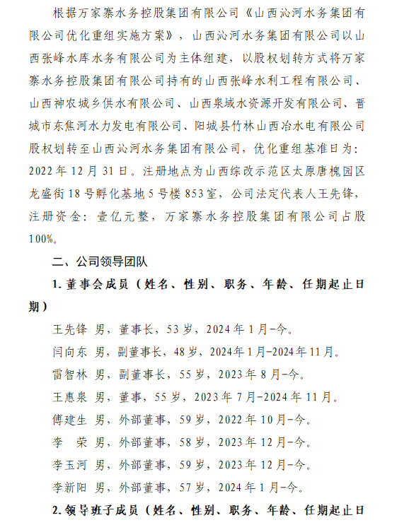 山西太忻滹沱河供水有限公司2024年中期重大信息公...