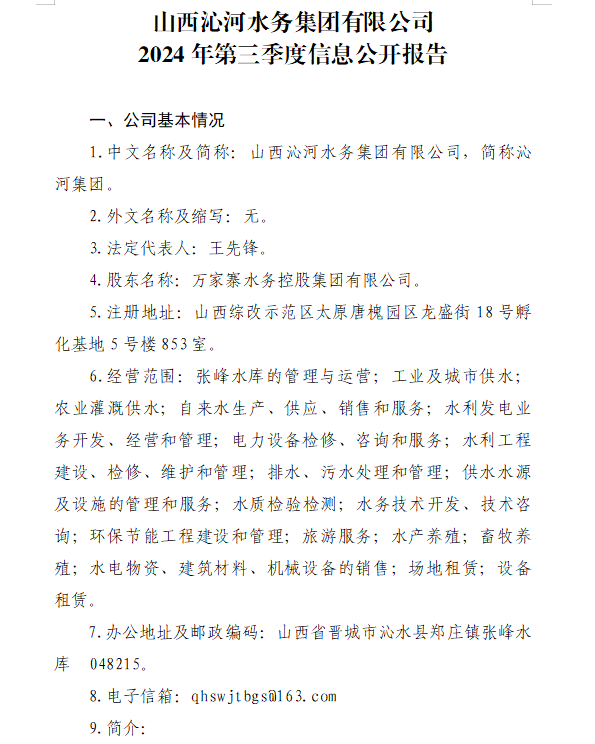 山西沁河水務(wù)集團(tuán)有限公司